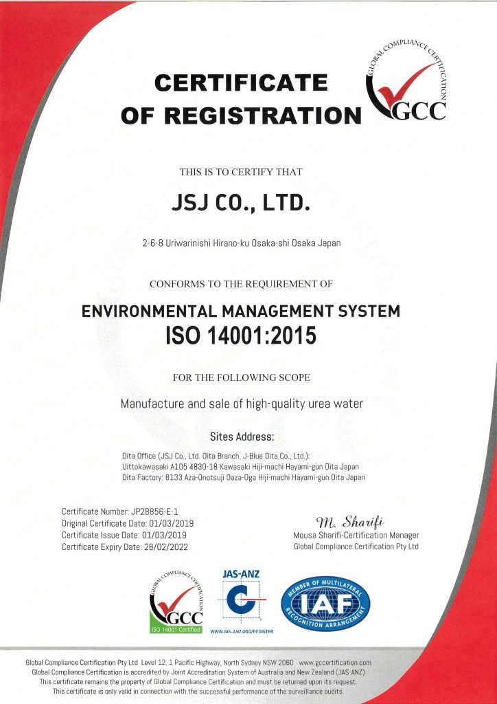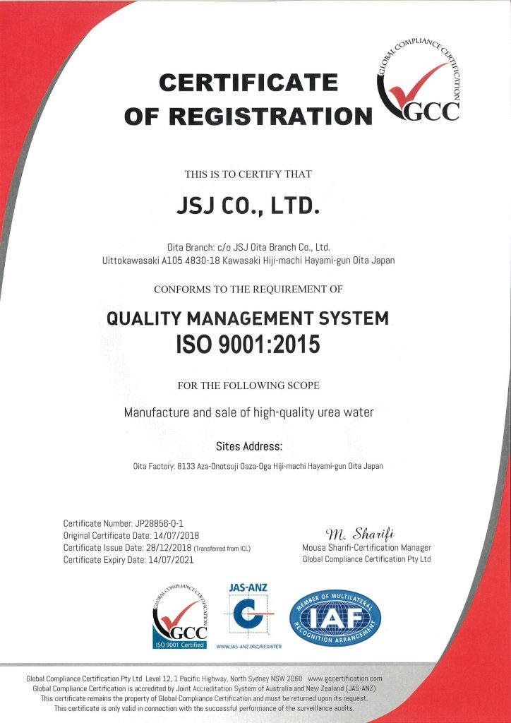 会社概要 Company Information 企業情報 会社名 オーエヌシー株式会社 代表者名 太田 信宏 所在地 東京都杉並区阿佐谷南3丁目 取引銀行 三井住友銀行西京信用金庫 事業内容 AdBlue®︎の販売 関連会社について 株式会社JSJ ISO9001:2015取得